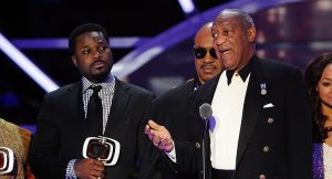 NEW YORK, NY – APRIL 10: Bill Cosby accepts the Impact Award for “The Cosby Show” with (L-R) actor Malcolm-Jamal Warner, presenter Stevie Wonder, actors Raven-Symone and Sabrina LeBeauf onstage at the 9th Annual TV Land Awards at the Javits Center on April 10, 2011 in New York City. (Photo by Larry Busacca/Getty Images)