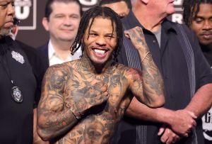 LAS VEGAS, NEVADA – JUNE 14: WBA lightweight champion Gervonta Davis waits to pose with Frank Martin during an official weigh-in at MGM Grand Garden Arena on June 14, 2024 in Las Vegas, Nevada. Davis is scheduled to defend his title against Martin at the arena on June 15, 2024. (Photo by Steve Marcus/Getty Images)
