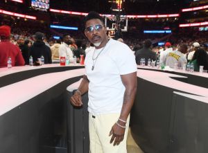 ATLANTA, GEORGIA – FEBRUARY 23: Rapper David Banner attends the game between the Detroit Pistons and the Atlanta Hawks at State Farm Arena on February 23, 2025 in Atlanta, Georgia. (Photo by Paras Griffin/Getty Images)