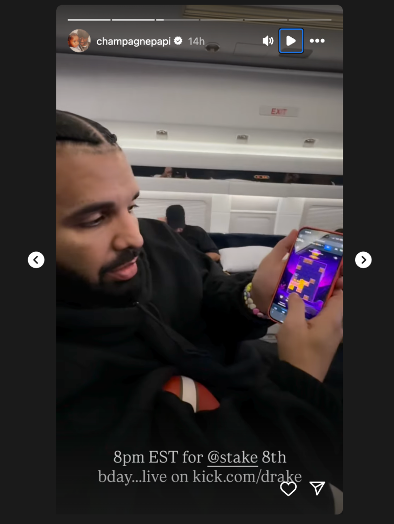 On Friday (Aug.8), Drake hopped onto his Instagram Story to share some exciting news about Stake. In honor of the gambling platform’s eighth anniversary, the “Nokia” rapper will be hosting a livestreaming event on the following day, Saturday (Aug.9) at 8 p.m.
