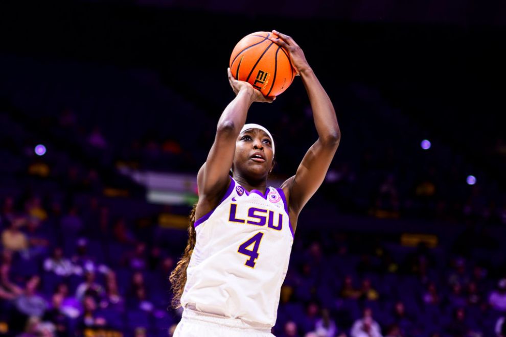 BATON ROUGE, LA – NOVEMBER 20: Flau’jae Johnson #4 of the LSU Tigers in action against the Tulane Green Wave on November 20, 2024 at the Pete Maravich Assembly Center in Baton Rouge, Louisiana. (Photo by Reagan Cotten/LSU/University Images via Getty Images)