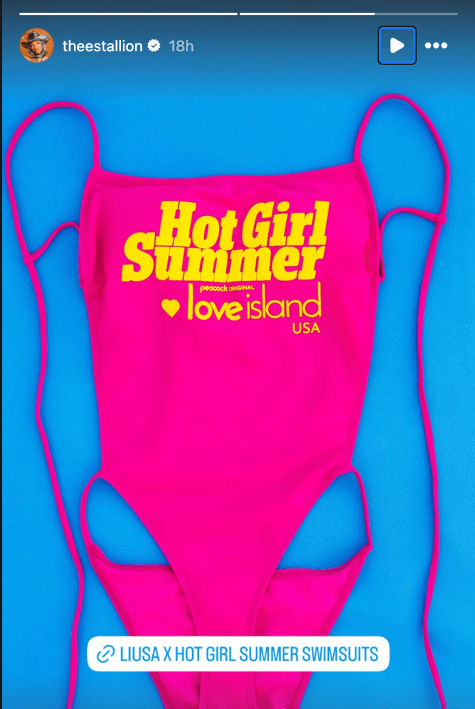 The “Everything Bigger In Texas” rapper also made it clear who the “Real Hot Girl” was as she flaunted her voluptuous frame, donning a slinky, gold, two-piece from her new swimwear brand, Hot Girl Swim. After the episode’s premiere, in an Instagram Story post, Megan unveiled a new, limited edition one-piece inspired by the series.