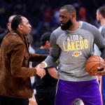Los Angeles, CA – March 03: LeBron James #6 of the Los Angeles Lakers greets ESPNs Stephen A. Smith prior to a NBA basketball game against the LA Clippers at the Crypto.com Arena in Los Angeles on Thursday, March 3, 2022. (Photo by Keith Birmingham/MediaNews Group/Pasadena Star-News via Getty Images)