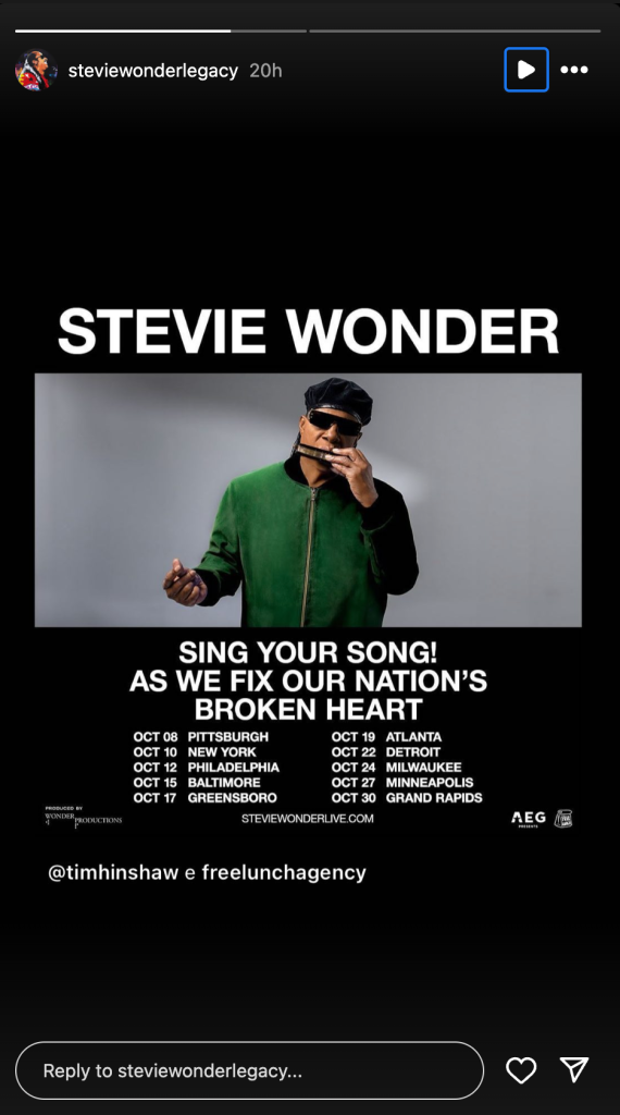 As for the tour’s catchy name, it’s a nod to his single “Can We Fix Our Nation’s Broken Heart,” marking his first new track in four years, the outlet reports. Just two days before dropping this exciting news, Stevie wowed the crowd with a heartfelt speech supporting Vice President Kamala Harris and her running mate, Minnesota Governor Tim Walz, followed by an electrifying rendition of his classic 1973 hit “Higher Ground.”