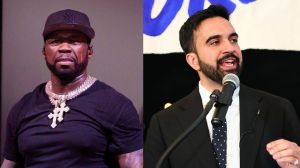NEW YORK, NEW YORK – OCTOBER 11: Jazz Chisholm Jr. and 50 Cent at Petite Disco on October 11, 2025 in New York City. (Photo by Kirill Bichutsky/Getty Images)