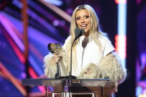 HOLLYWOOD, CALIFORNIA – MARCH 27: Doja Cat accepts an iHeartRadio Titanium Award for “Woman” onstage during the 2023 iHeartRadio Music Awards at Dolby Theatre on March 27, 2023 in Hollywood, California. (Photo by Monica Schipper/Getty Images)