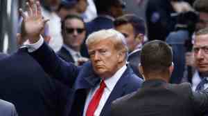 NEW YORK, NEW YORK – APRIL 04: (EDITOR’S NOTE: Alternate crop) Former U.S. President Donald Trump waves as he arrives at the Manhattan Criminal Court for his arraignment hearing on April 04, 2023 in New York, New York. Trump will be arraigned during his first court appearance today following an indictment by a grand jury that heard evidence about money paid to adult film star Stormy Daniels before the 2016 presidential election. With the indictment, Trump becomes the first former U.S. president in history to be charged with a criminal offense.(Photo by Kena Betancur/Getty Images)