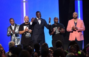 LOS ANGELES, CALIFORNIA – JUNE 23: Antron McCray, Kevin Richardson, Raymond Santana, Korey Wise, and Yusef Salaam (the Exonerated Five) speak onstage at the 2019 BET Awards on June 23, 2019 in Los Angeles, California. (Photo by Kevin Winter/Getty Images)