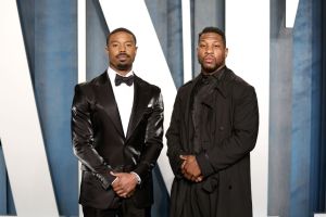 BEVERLY HILLS, CALIFORNIA – MARCH 27: Michael B. Jordan and Jonathan Majors attend the 2022 Vanity Fair Oscar Party hosted by Radhika Jones at Wallis Annenberg Center for the Performing Arts on March 27, 2022 in Beverly Hills, California. (Photo by Dimitrios Kambouris/WireImage)