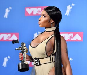 US/Trinidadian rapper Nicki Minaj holds her award for best hip-hop video in the press room at the 2018 MTV Video Music Awards at Radio City Music Hall on August 20, 2018 in New York City. (Photo by ANGELA WEISS / AFP) (Photo credit should read ANGELA WEISS/AFP via Getty Images)